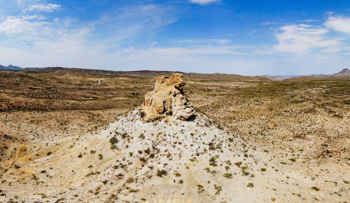Foto de un desierto rocoso con un camino que se torna circular alrededor de su centro